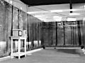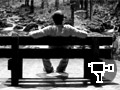 8 Robotic birds hang from the ceiling of a large room which is totally wallpapered with a photo-realistic wallpaper of a forest. A bench is provided for the audience.