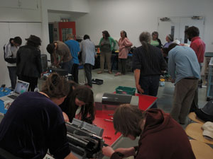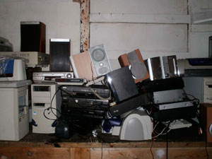 Working full on towards the Oriel Factory exhibition. The first workshop with local volunteers went well, around 12 people turned up and eagerly dismantled electronic waste items I had collected in the morning from the local recycling facility run by Potters Recycling.