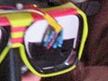 The helmets are fitted with one ultra-sound sensor and an infra-red beacon, which are connected to LEDs (light-emitting diodes) in the goggles. The goggles are otherwise blind.