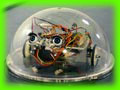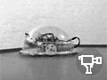SmartBot is a simple mobile robot that lives on a table fitted with a low border. The robot moves in a straight line until it hits the border. Then it blinks and says either "Shit" or "Merde" or "Fuck" before resuming its hopeless exploration. After a few minutes it stops and cries luminous tears. Crying done it shuts its eyes, goes to sleep for a while, and starts all over again.