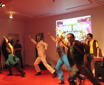 The disco choreography was created with volunteer choreographers, dancers, singer, and costume designer.