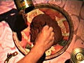 Inspired by the illustration on a tube of harissa sauce, of the Flambeau du Cap Bon brand, very common in Marseille, I decided to make a replica live on stage.