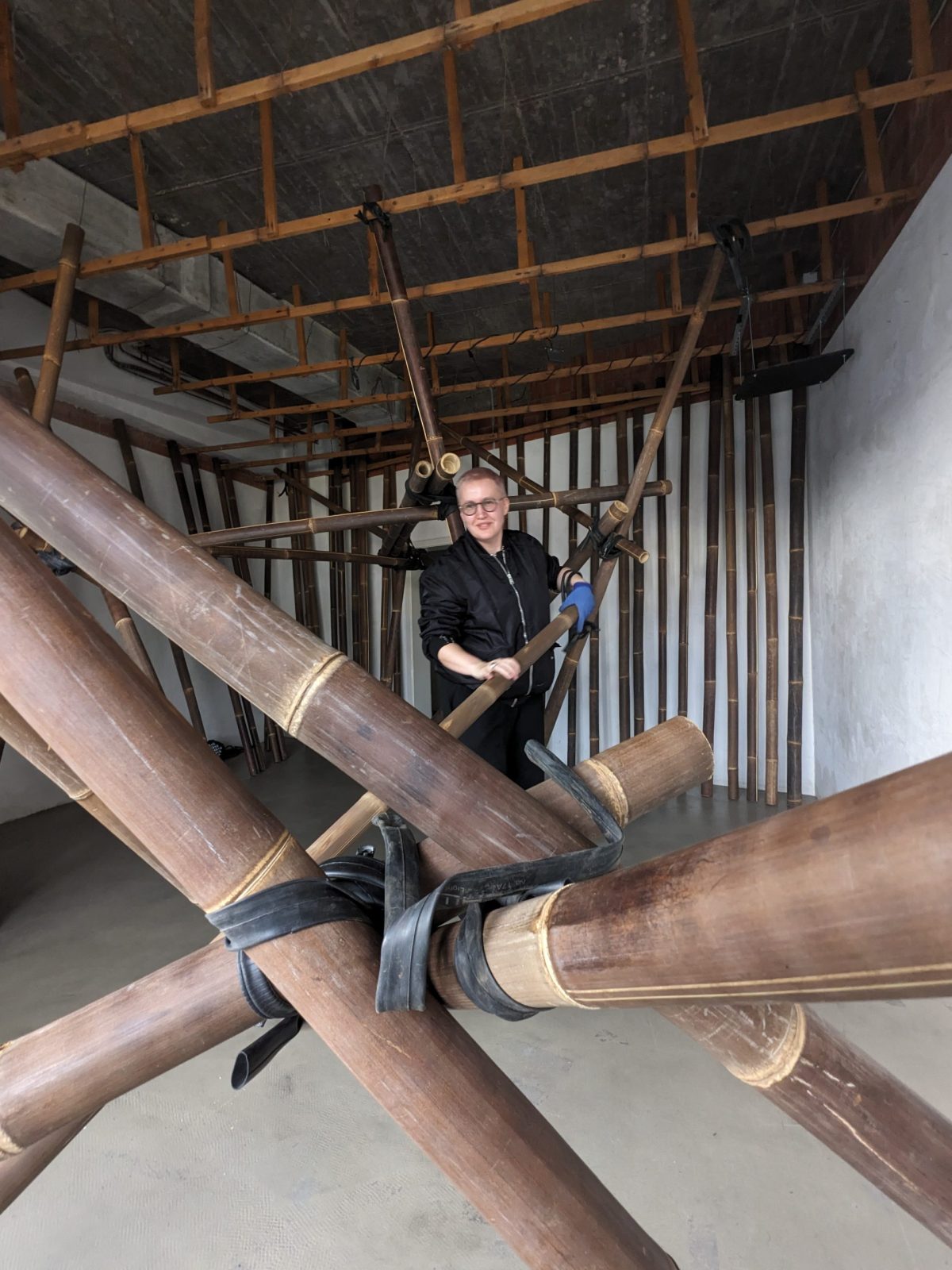 During my stay artist in residence Margo Zalite ran a bamboo architecture workshop, a synthesizer community workshops and a public conversation on Art of the Palliative Turn, a notion developed by artist Olav Westphalen.